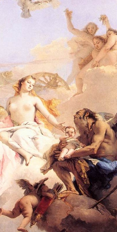 C’est là l’un des secrets que Tiepolo dévoile. Vénus et le Temps sont les seuls amants véritables. La Beauté appelle le Savoir ; la Sagesse chenue et brune aime à caresser la peau blanche des apparences. Quand il se tient devant la Beauté, le Temps devient intense et profus. Tous les dons sont à prévoir.